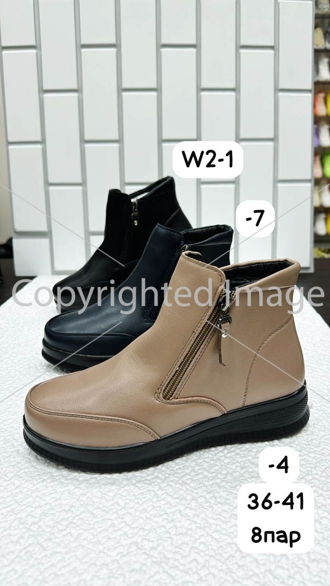 Ботинки выполнены из искусственной кожи и текстиля. Доступны в следующих цветах: бежевый, темно-синий, черный. Размерный ряд — от 36 до 41 размера. Минимальный заказ — 1 коробка, в коробке 8 пар.