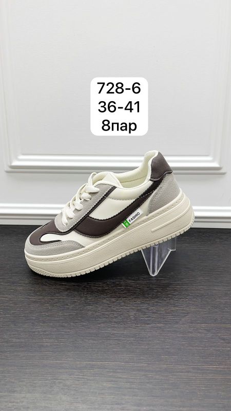 Модель выполнена из искуственной кожи и текстиля, в коричнево-бежевом цвете. Размерный ряд от 36 до 41 размера. Минимальный заказ - 1 коробка, в коробке 8 пар.
