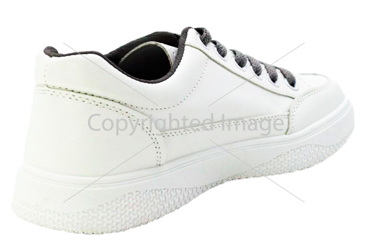 Модель выполнена из искусственной кожи, в белом цвете, со шнурками. Размерный ряд от 36 до 41 размера. Минимальный заказ - 1 коробка, в коробке 10 пар.