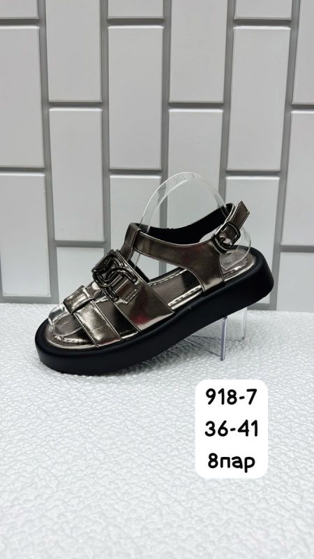 Сандалии, в зависимости от выбранной модели, выполнены из искусственной кожи / искусственной замши / лакированной кожи и представлены в различных цветовых решениях. Размерный ряд — от 36 до 41 размера. Минимальный заказ — 1 коробка, в коробке 8 пар.