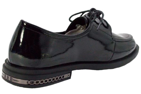 Модель выполнена из лакированной кожи, в чёрном цвете. Размерный ряд от 36 до 41 размера. Минимальный заказ - 1 коробка, в коробке 8 пар.