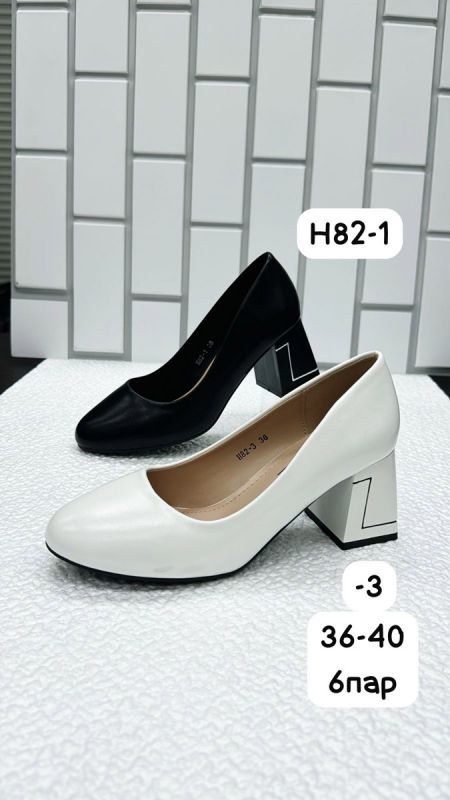 Туфли, в зависимости от модели, выполнены из искусственной кожи / искусственной замши в следующих цветах: черный, белый, бежевый. Размерный ряд — от 36 до 40 размера. Минимальный заказ — 1 коробка, в коробке 6 пар.