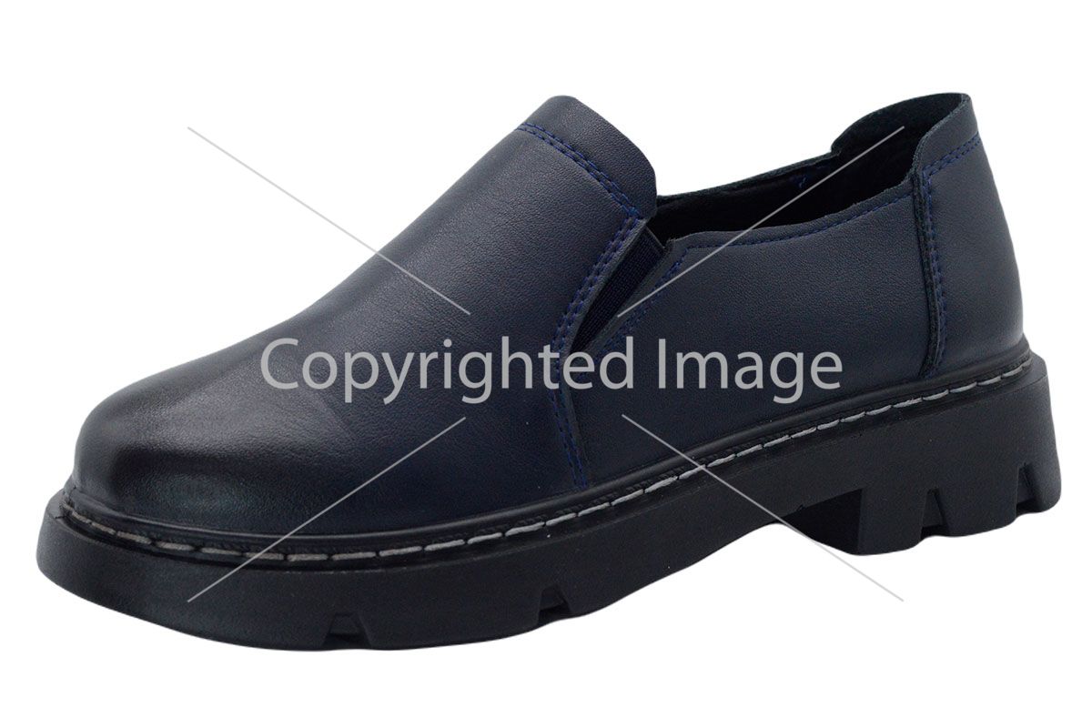 Модель выполнена из искусственной кожи, в синем цвете. Размерный ряд от 36 до 41 размера. Минимальный заказ - 1 коробка, в коробке 8 пар.
